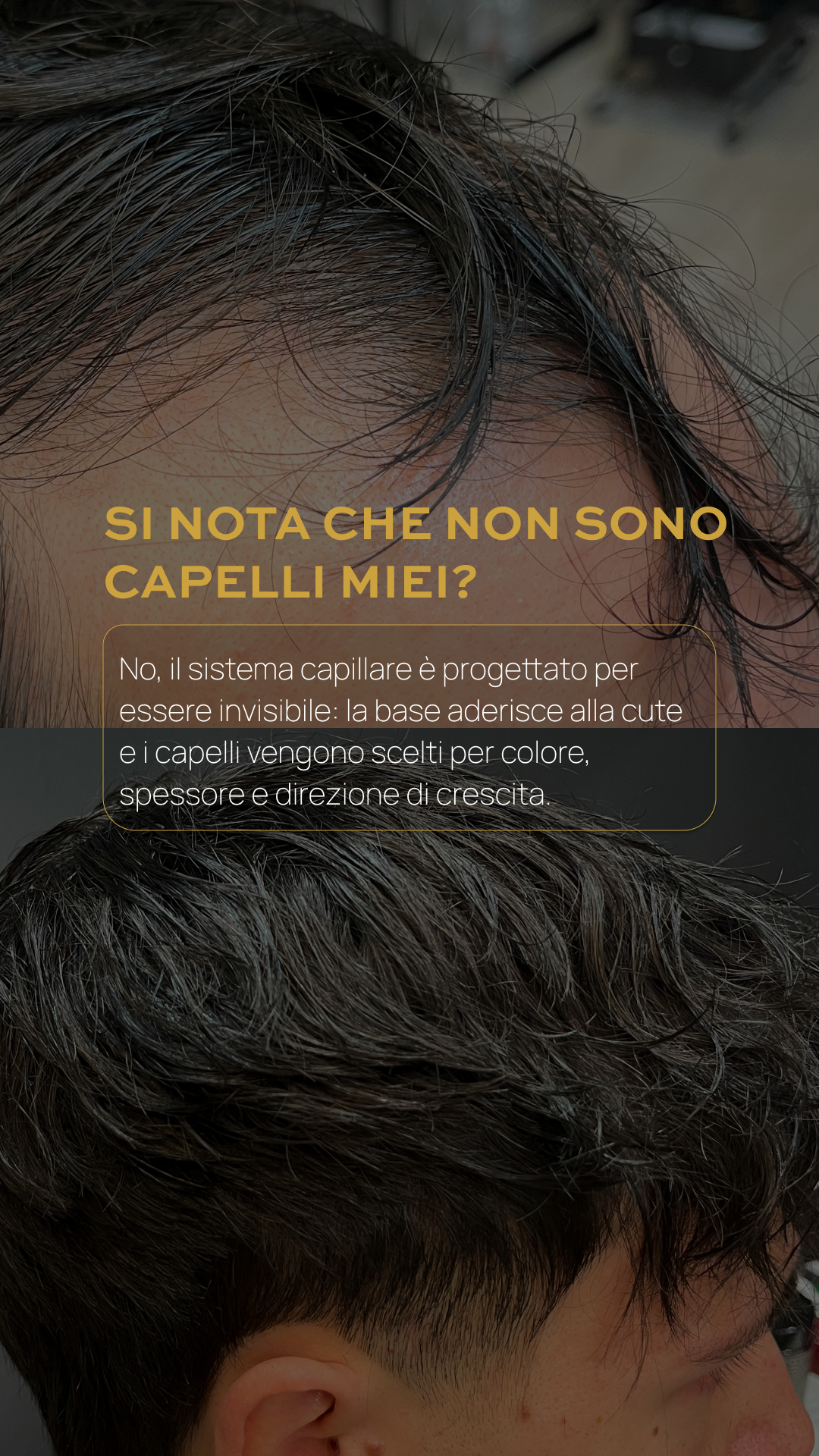 Non è una parrucca o un parrucchino. Non è un trapianto. È una soluzione immediata, non invasiva, personalizzata in ogni dettaglio.