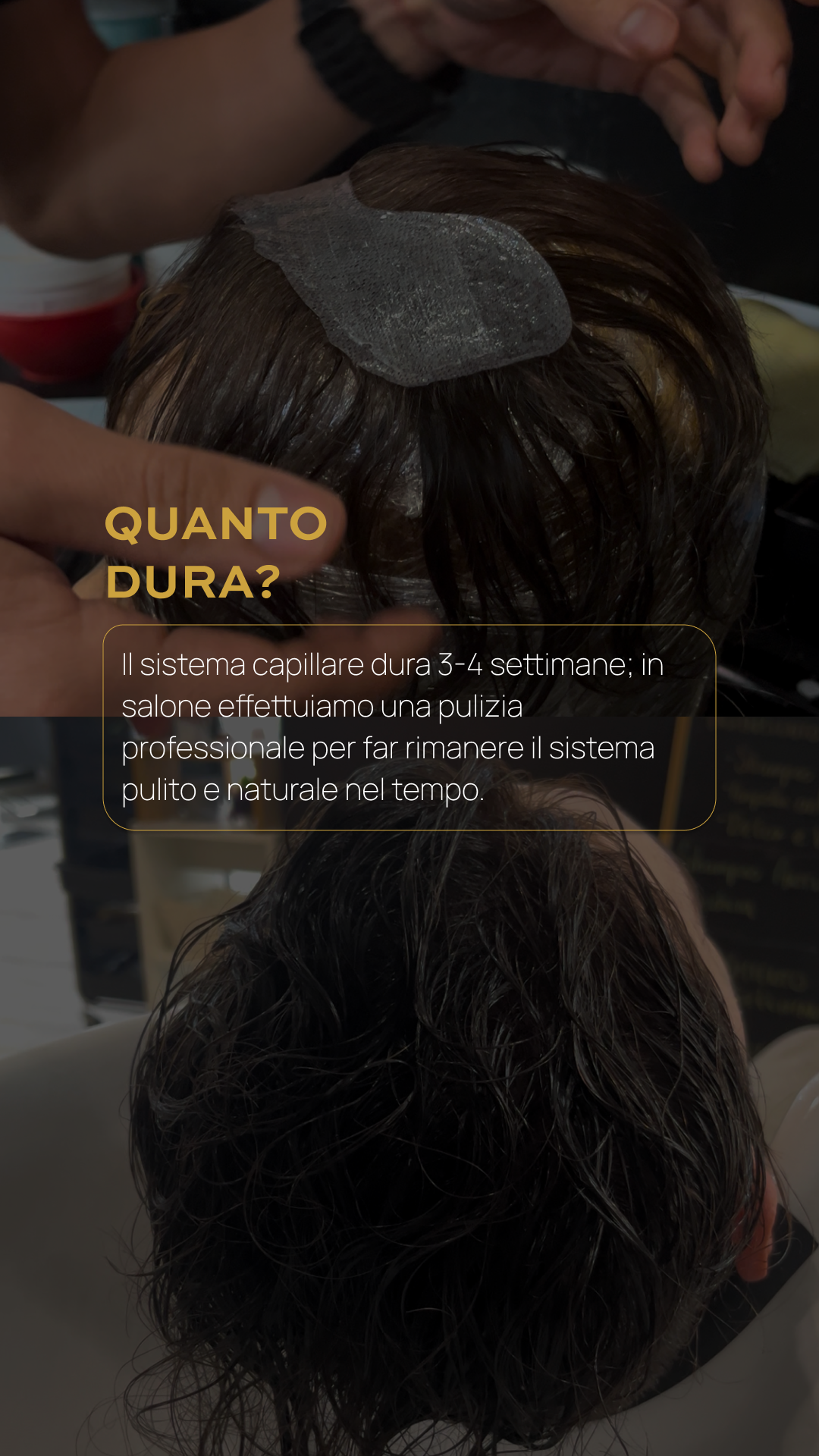 Un sistema capillare ben mantenuto dura dai 6 ai 12 mesi, in base al tipo di capello e alla cura. Ogni mese si effettua una manutenzione in salone, che include: